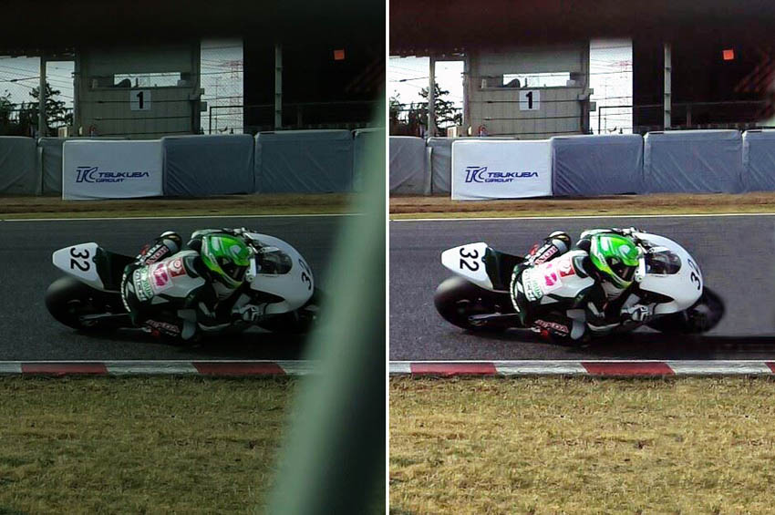 全日本ロードレース選手権が開幕しまして、昨日は筑波サーキットに行ってました。まあ今日も明日も行くんですがね。携帯をガラケーに変えたので、スマホで出来てたことができないんで、いろいろ新鮮な感じを受けてます。それはさて置き、昨日の走行を携帯で撮影してみました。フェンス越しなんでフェンスが写りこんじゃうのですが、写真の加工技術がありまして、それを使うとこんな感じに変わります。左が撮影したまま、右が加工したものです。