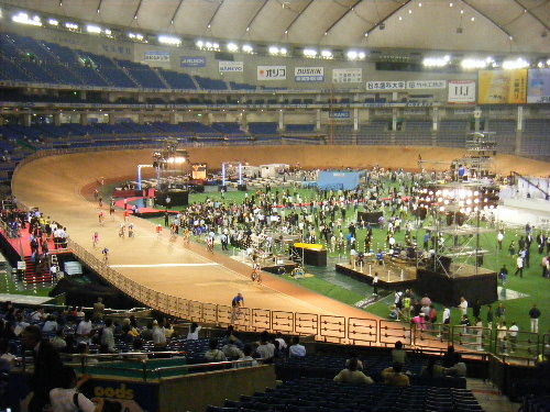東京ドームって競輪場なんですよ。だからオープン早々から裏通路に大量にモニターがあった。本来はオッズを出す画面でしたけど、映像も流せるからプロ野球時に映像が流れていて裏の通路で見られた。だけどバンクはずーっと収納されたままです。
