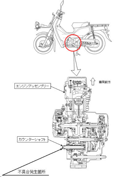 今年出されたリコールですが、スーパーカブ 110のカウンターシャフト不良というのが出されています。エンジンを開けなきゃ交換できない部品ですので大掛かりなものです。交換するにはホンダの販売店に車両を入庫して交換手配をするのですが、お仕事用バイクでしょうから、修理期間中のユーザー側が抱える負担はどうしても大きくなります。