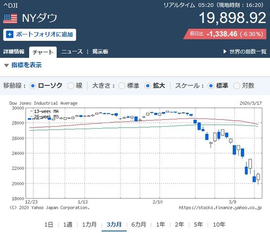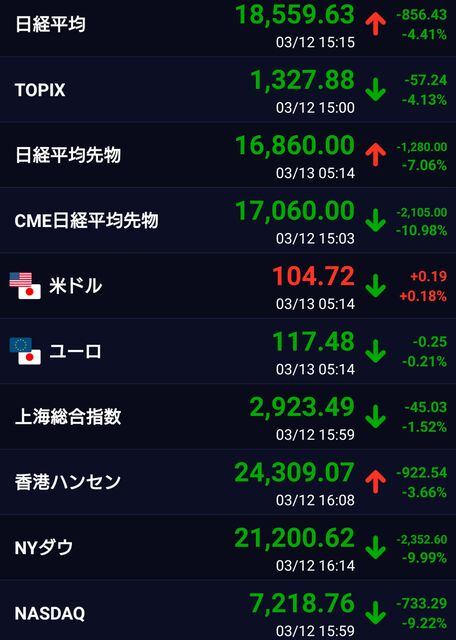 あれから20日ほどが経過しました。それでも株価が2万円台を維持してるってのが信じられません。そんな程度のダメージなんですかねえ。うちの会社なんてイベントも広告もダメージ直撃ですよ。3月って最大の需要期ですが、3月の最終利益は前年比7%ぐらいですよ。死んじゃう・・・。