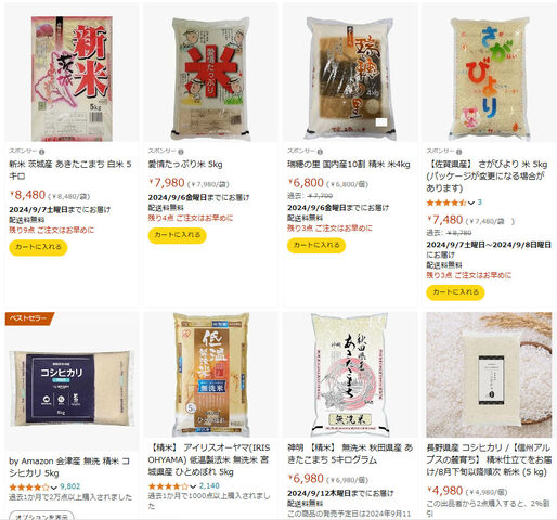 アマゾンで売ってる5kgのお米も5千円以上になってますね。こうやって騙される老人も良くないし、騙す小売りも良くないなーと感じております。まあ買い占める人が一番悪いんでしょうけどね。