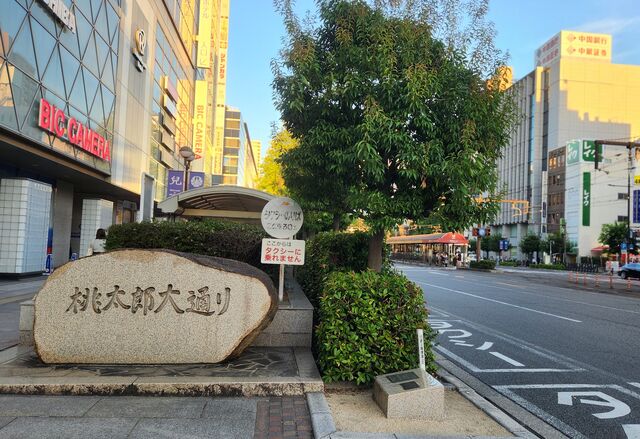 写真は岡山駅前の桃太郎大通り。1996年はF1ではなく世界ツーリングカー選手権(ITC)が岡山で開催されることとなり、この目抜き通りを封鎖して実施される桃太郎まつりで、本物のメルセデスレーシングカーを展示して大々的にPRイベントをやりました。