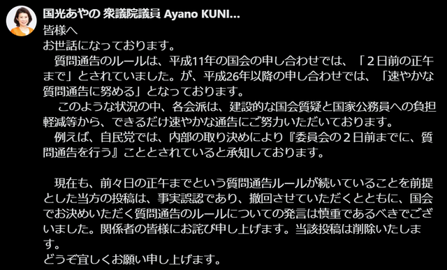 また、野党の質問通告が遅いと書き込んだ副大臣についてもですが、基本的に質問書の提出は2日前正午となっています。