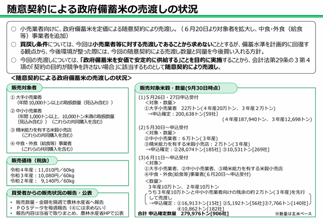 あの小泉大臣が就任して数週間で店頭に並んだ随意契約による政府備蓄米の話しって今年の5月末ですよ。それから約3か月後の8月20日(引渡期限)には農水省が「随意契約による政府備蓄米の売渡しの今後の対応について」を発表しました。